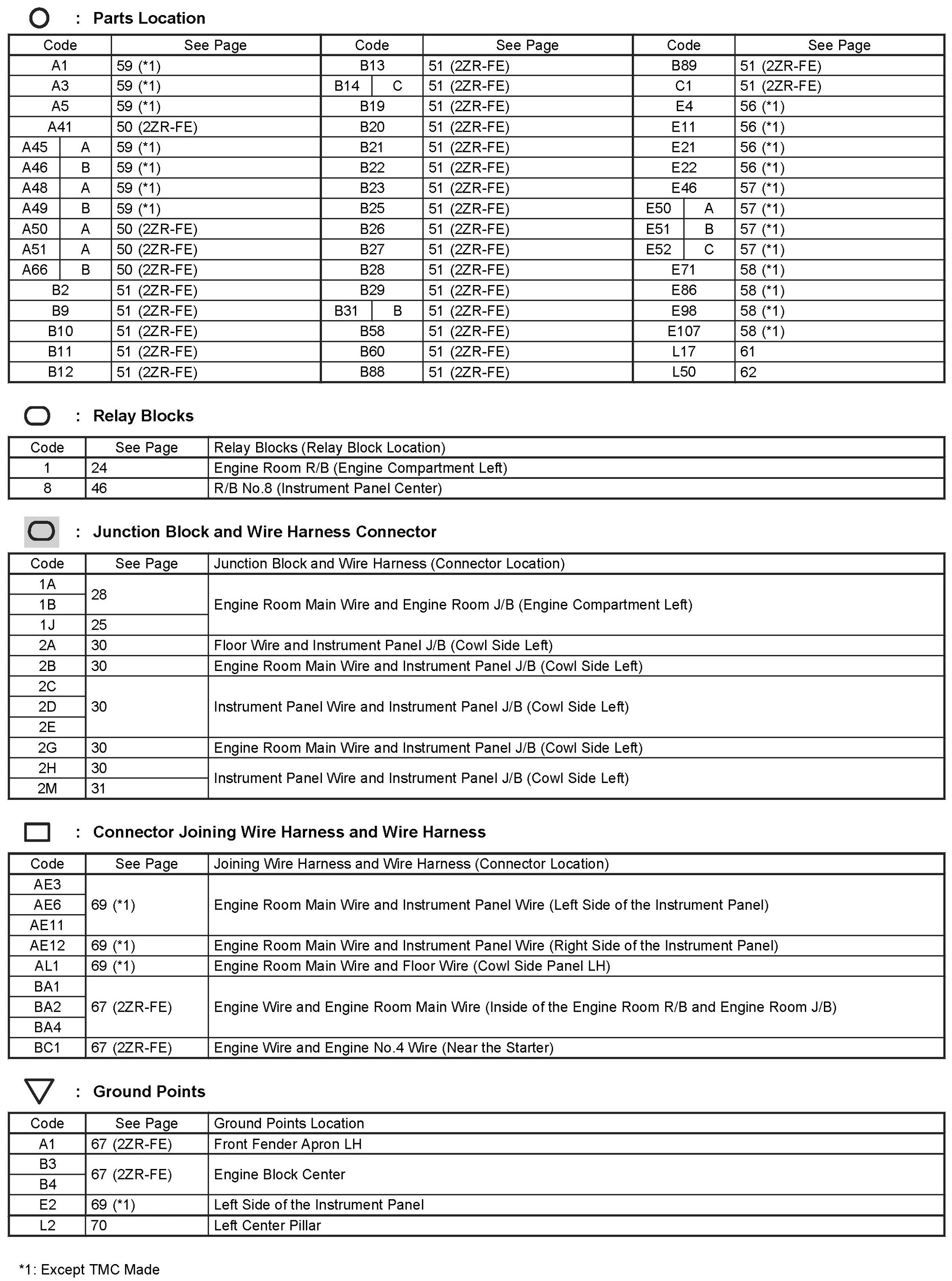 Locations: The locations of components, connectors, ground points, and splices referred to within these diagrams can be found at Vehicle Locations. Locations