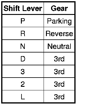 When the transmission wire is disconnected, the transaxle gear will be set as listed below.