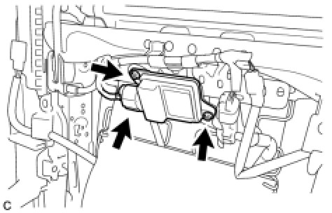 * When installing the occupant classification ECU, be careful that the SRS wiring does not interfere with other parts and that it is not pinched between other parts.
