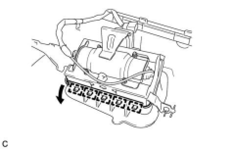 (c) Disengage the 5 hooks and remove the front passenger airbag assembly from the instrument panel as shown in the illustration.