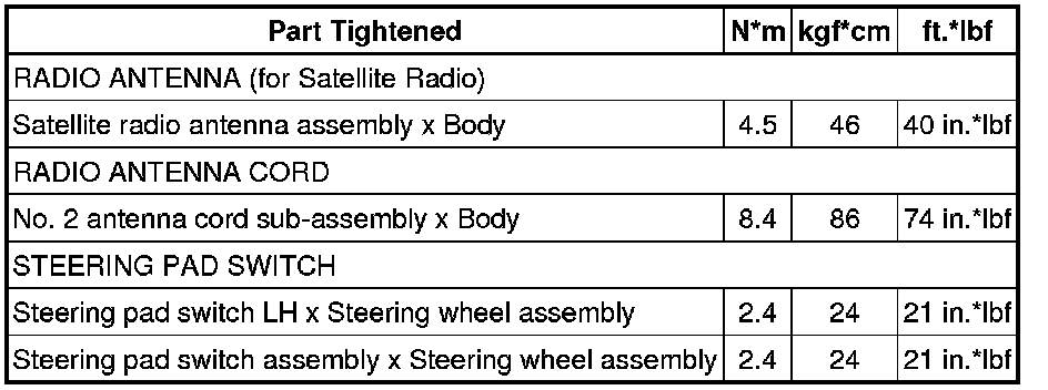 SPECIFICATIONS: AUDIO / VIDEO: TORQUE SPECIFICATIONS
