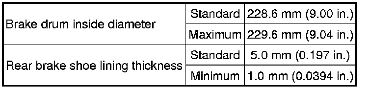 SPECIFICATIONS: BRAKE (REAR): SERVICE DATA