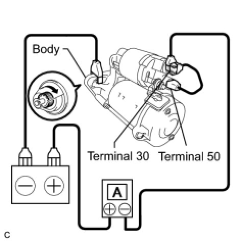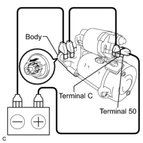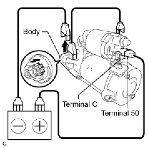 (1) Check that the pinion gear does not return inward after the cable is disconnected from terminal C.