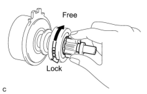 (1) Rotate the clutch pinion gear clockwise and check that it turns freely. Try to rotate the clutch pinion gear counterclockwise and check that it locks.