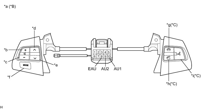 (1) Connect a battery positive (+) lead to terminal IL+2 and a negative (-) lead to terminal EAU of the steering pad switch connector.