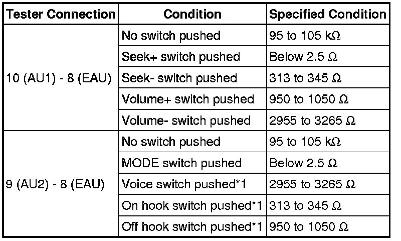 AUDIO / VIDEO: STEERING PAD SWITCH: INSPECTION