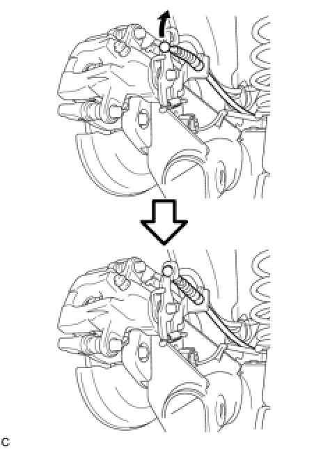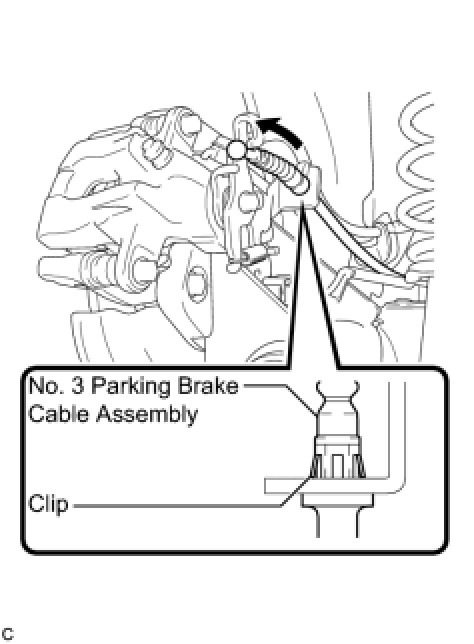 Be sure to engage the No. 3 parking cable assembly clip onto the rear disc brake cylinder assembly LH as shown in the illustration.