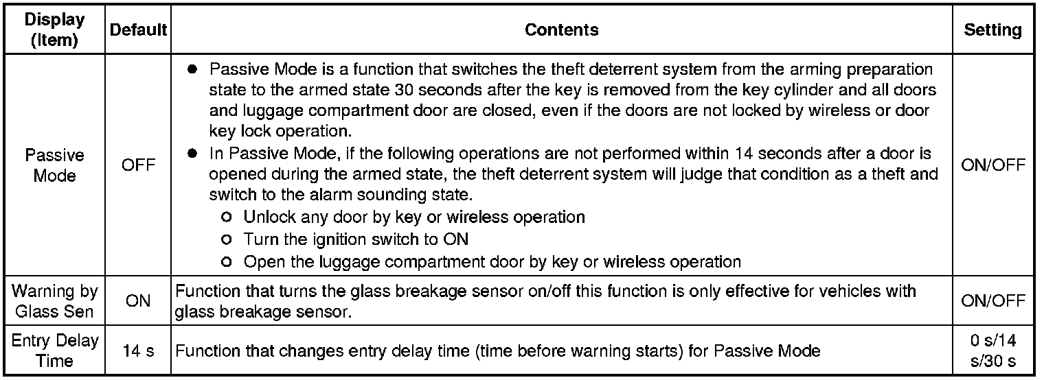 * *: This setting is only valid for the buzzer which sounds at 20 km/h (12 mph) or more.