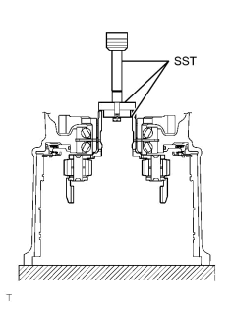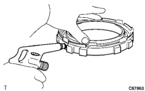 (a) Using SST, a press and a screwdriver, remove the snap ring.