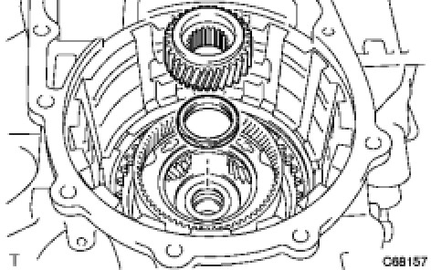 (a) Remove the front planetary sun gear and thrust needle roller bearing from the transaxle case.