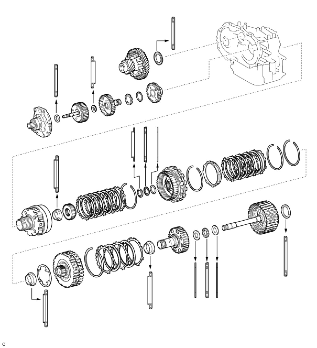 If the preload is not within the specifications, remove the differential from the transaxle case.