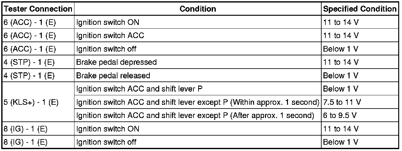 If the result is not as specified, replace the shift lock control unit assembly.