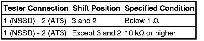 (b) Measure the resistance according to the value(s) in the table below when the shift lever is moved to each position.