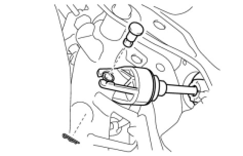 Install the bolt from the right side of the vehicle.