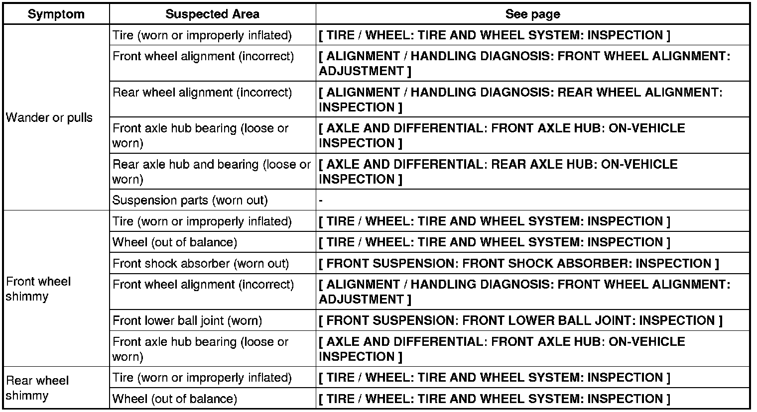 AXLE AND DIFFERENTIAL: AXLE SYSTEM: PROBLEM SYMPTOMS TABLE