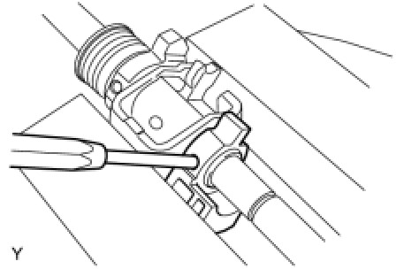 (a) Using a screwdriver, remove the E-ring, No. 2 select spring seat and compression spring from the shift and select lever shaft.