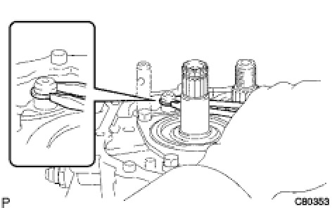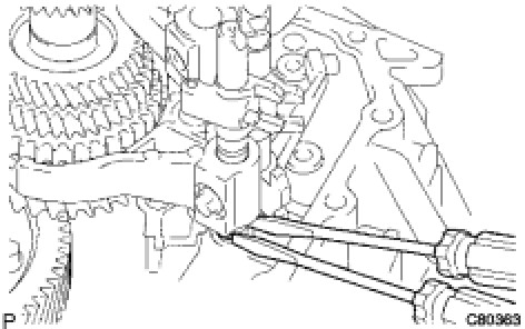 (a) Remove the reverse idler gear sub-assembly, thrust washer, and reverse idler gear shaft from the transaxle case.