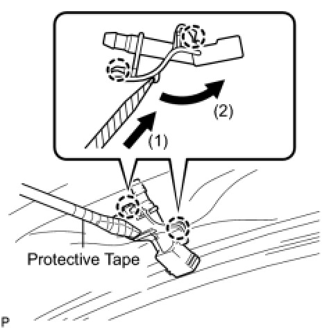 (a) Using a screwdriver, disengage the 2 claws and separate the washer nozzle sub-assembly as shown in the illustration.