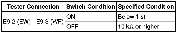 (4) Turn the front washer switch ON and OFF, and check the voltage between terminals E10-3 (+1) and E9-2 (EW).