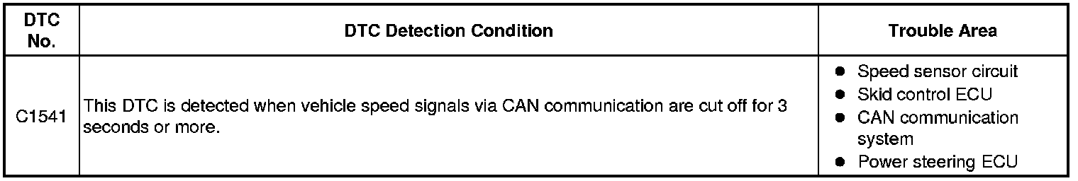 POWER ASSIST SYSTEMS: POWER STEERING SYSTEM (for 2AZ-FE): C1541: Vehicle Speed Signal Malfunction