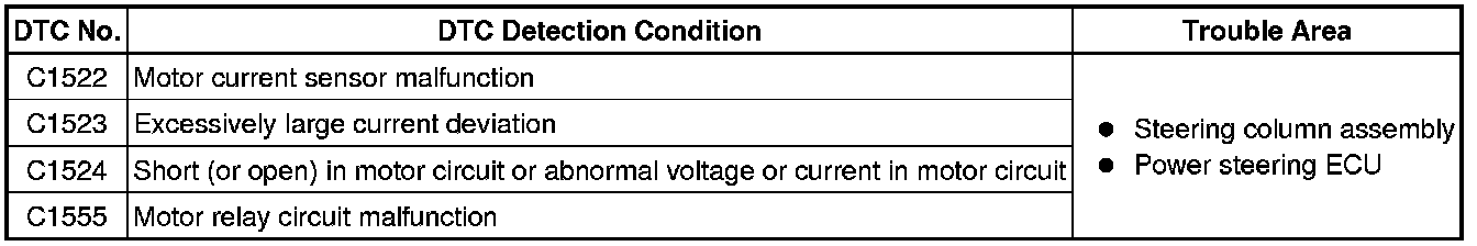 POWER ASSIST SYSTEMS: POWER STEERING SYSTEM (for 2AZ-FE): C1522-C1555: Motor Circuit Malfunction