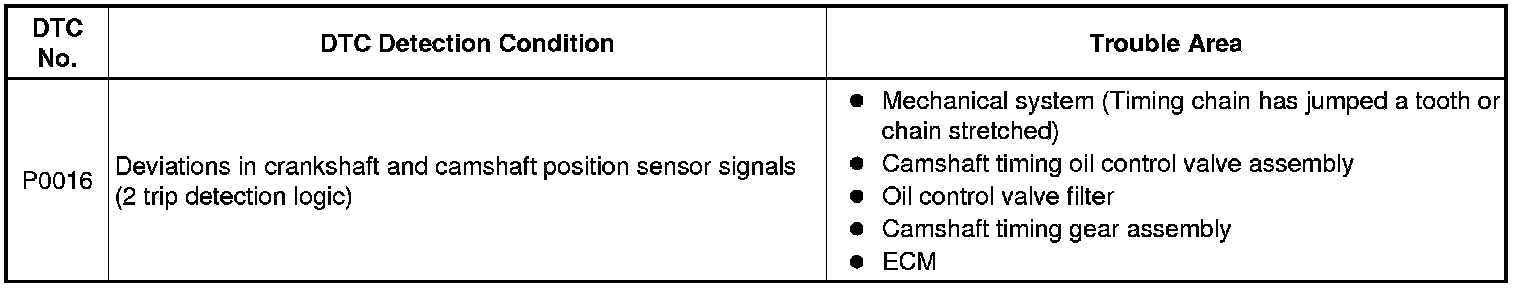 * The monitor for this DTC detects when the timing chain is shifted by one tooth or more.