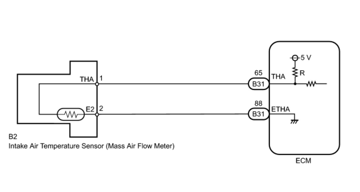 - The intake air temperature sensor is powered by a 5 V supply from the THA terminal of the ECM, via resistor R which is located inside the ECM.