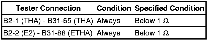 (b) Connect terminals 1 (THA) and 2 (E2) of the mass air flow meter wire harness side connector.