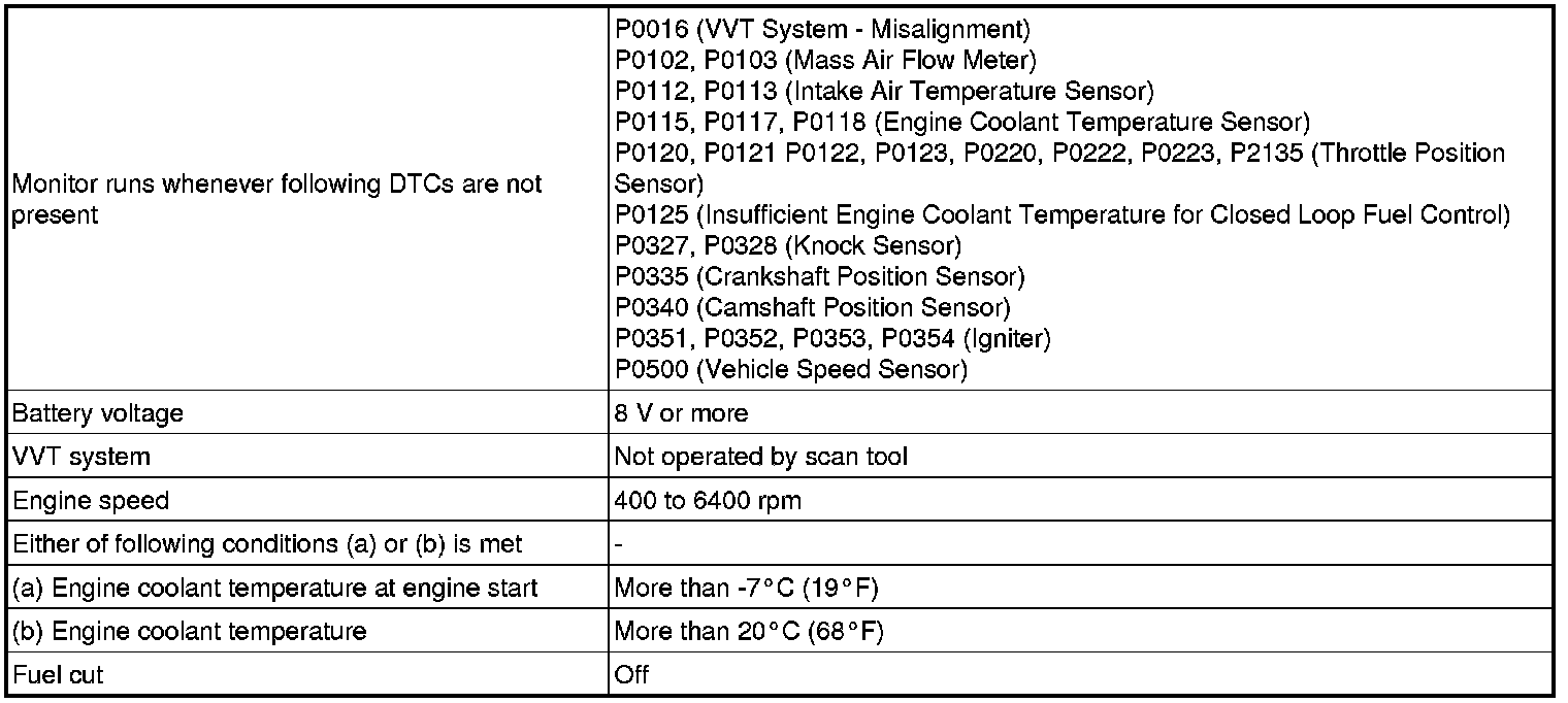 * If the freeze frame data record of the engine coolant temperature is below 75°C (167°F), the misfire may be detected only when the engine is cold.
