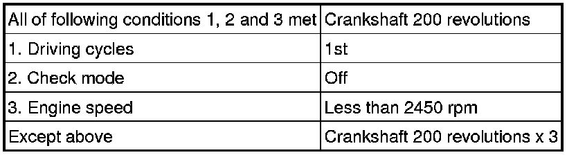 - Within the first 1000 crankshaft revolutions after the engine starts, an excessive number of misfires (approximately 40 to 60 misfires per 1000 crankshaft revolutions) occurs once.
