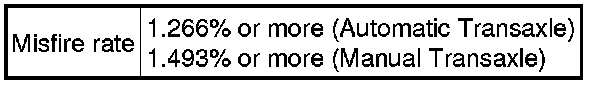 - An excessive number of misfires (approximately 20 to 50 misfires per 1000 crankshaft revolutions) occurs a total of 4 times.