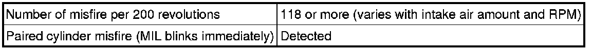 - At a normal engine speed, a sufficient amount of misfires to damage the catalyst occurring within 200 crankshaft revolutions is detected 3 times.