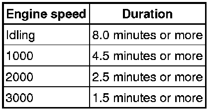 In order to store misfire DTCs, it is necessary to operate the vehicle for the period of time shown in the table below, confirm the Misfire RPM and Misfire Load in the Data List.