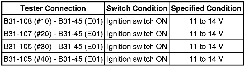 10. CHECK TERMINAL VOLTAGE (POWER SOURCE OF FUEL INJECTOR ASSEMBLY)