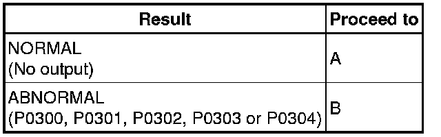 If any DTCs other than P0300, P0301, P0302, P0303 and P0304 are output, troubleshoot those DTCs first.