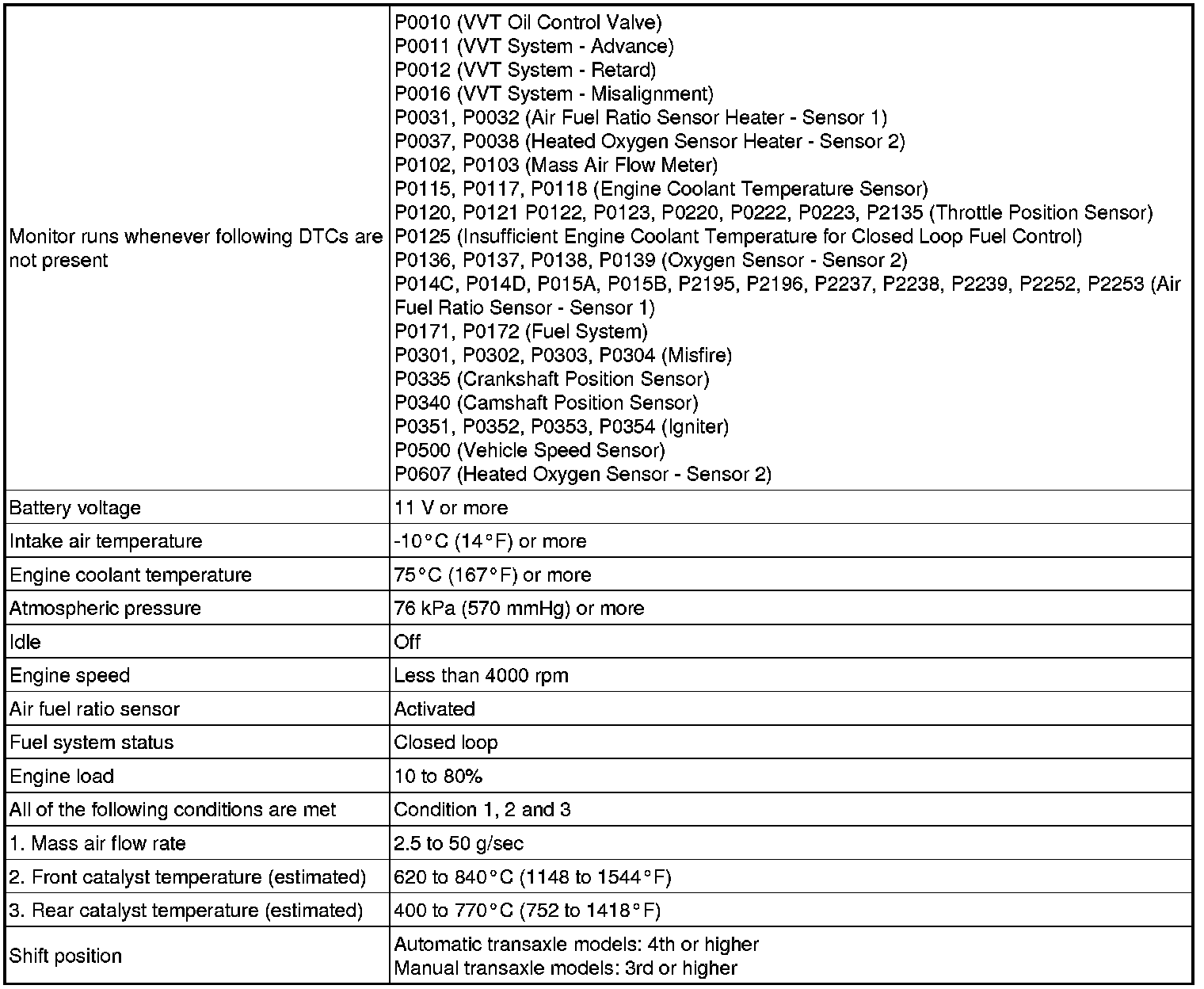 * The monitor item will change to Complete as the Catalyst Efficiency monitor operates [C].