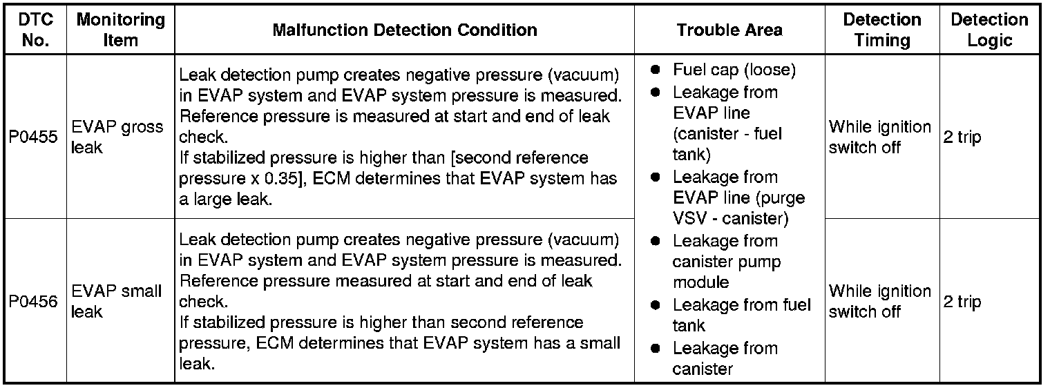 2AZ-FE ENGINE CONTROL: SFI SYSTEM: P0455, P0456: Evaporative Emission Control System Leak Detected (Gross Leak)