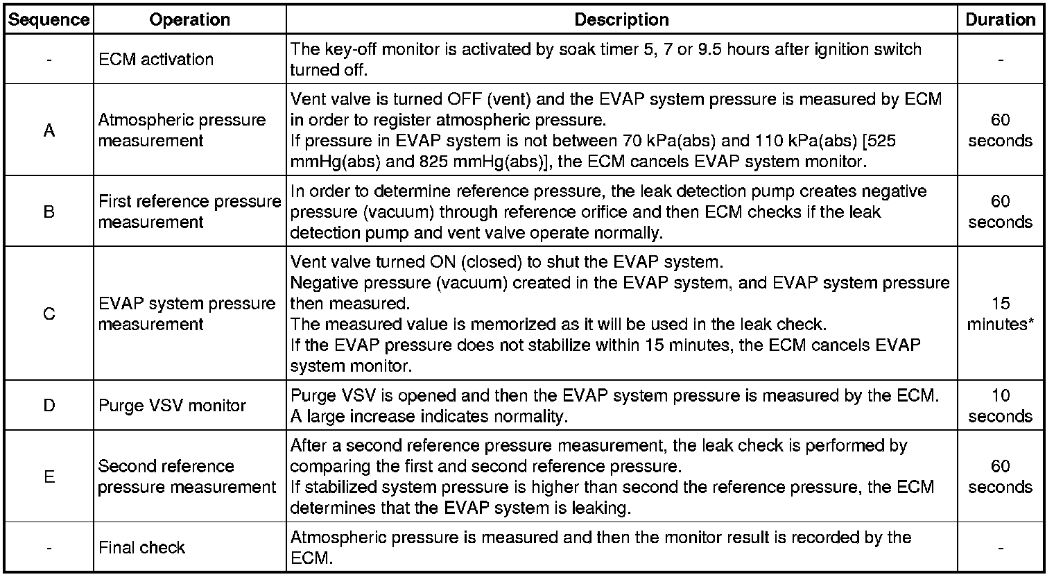 *: If only a small amount of fuel is in the fuel tank, it takes longer for the EVAP pressure to stabilize.