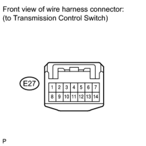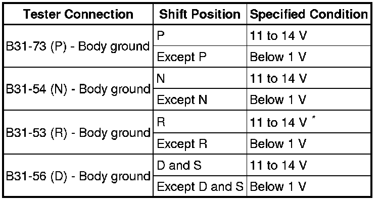 (c) Turn the ignition switch to ON, and measure the voltage according to the value(s) in the table below when the shift lever is moved to each position.