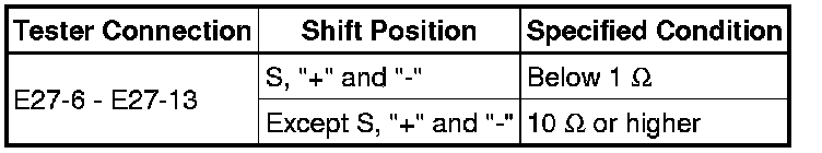 (b) Measure resistance according to the value(s) in the table below when the shift lever is moved to each position.