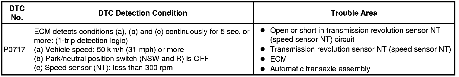 U250E AUTOMATIC TRANSMISSION / TRANSAXLE: AUTOMATIC TRANSAXLE SYSTEM: P0717: Turbine Speed Sensor Circuit No Signal