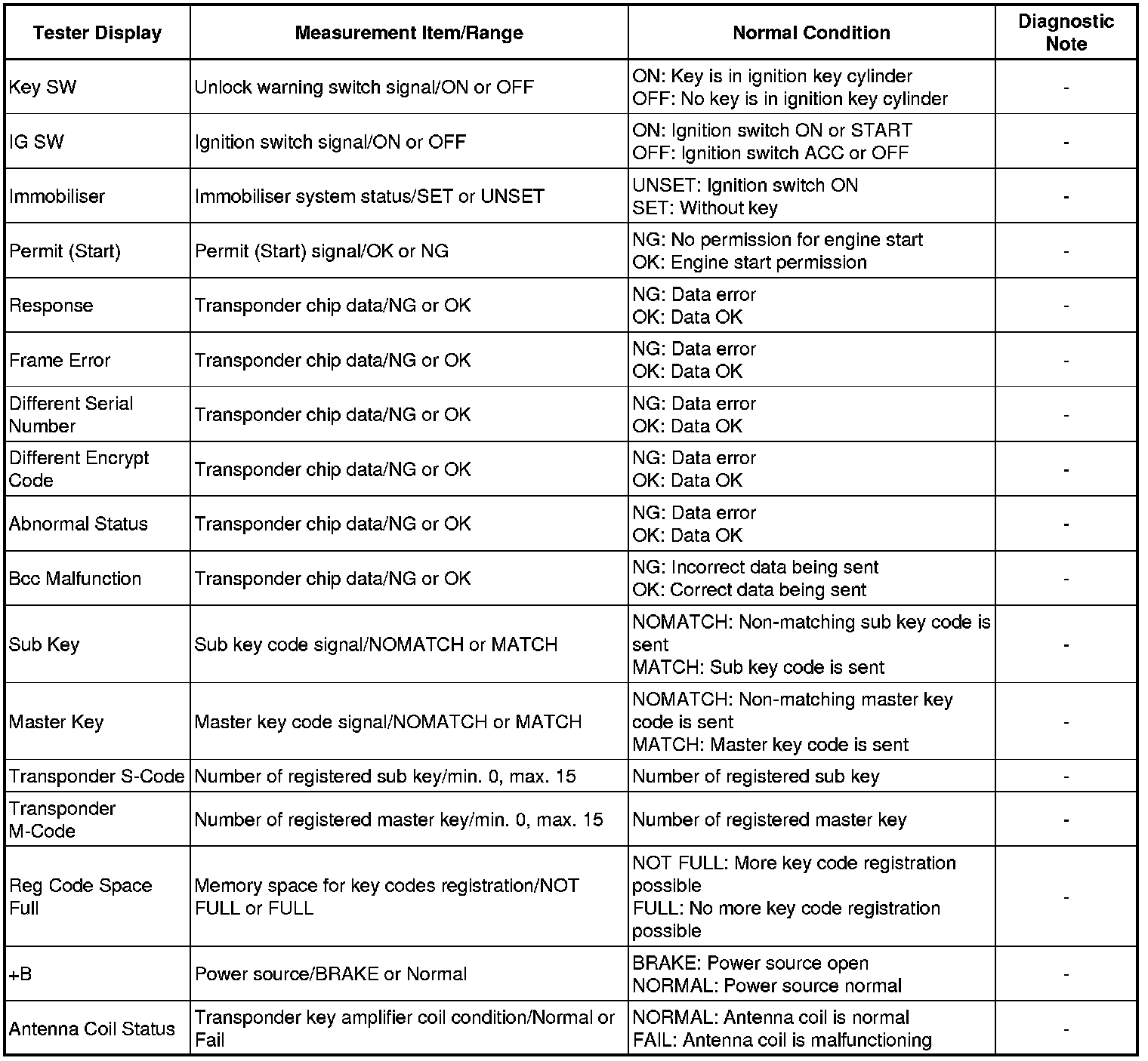 THEFT DETERRENT / KEYLESS ENTRY: ENGINE IMMOBILISER SYSTEM (w/o Smart Key System): DATA LIST / ACTIVE TEST