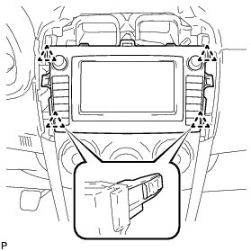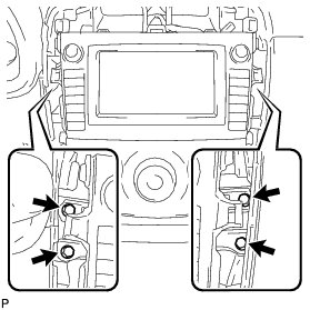 (b) Pull the navigation receiver with bracket toward the rear of the vehicle and disengage the 4 clips.