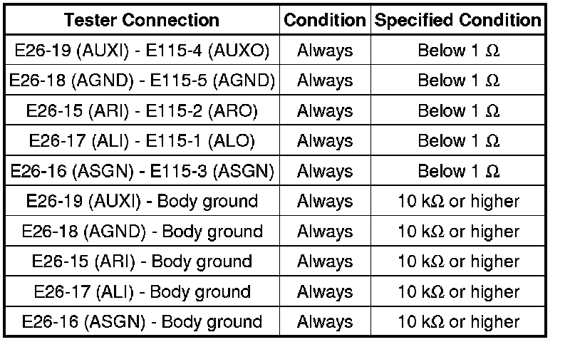 If there is an open or short in the circuit, sound cannot be heard from the speakers even if there is no malfunction in the navigation receiver assembly or speakers.