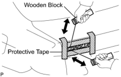 (b) Insert a piano wire between the vehicle body and name plate.