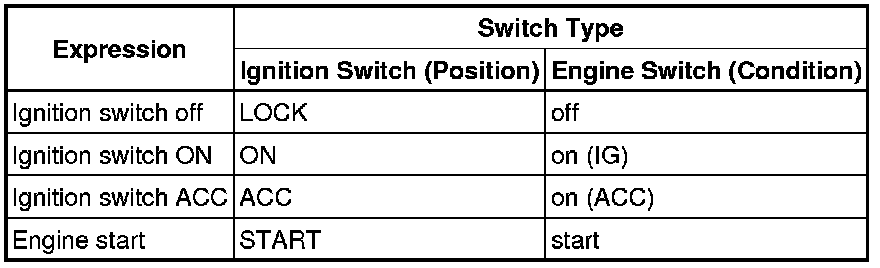 1. EXPRESSIONS OF IGNITION SWITCH