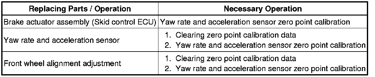 * After replacing the VSC relevant components or performing front wheel alignment adjustment, clear and read the sensor calibration data.