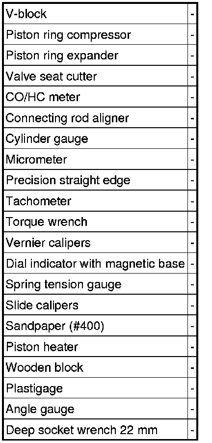 PREPARATION: 2AZ-FE ENGINE MECHANICAL: EQUIPMENT