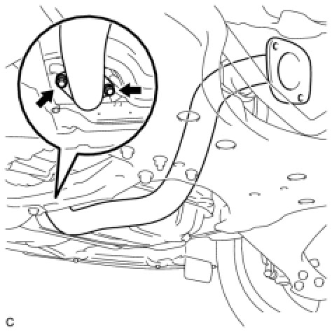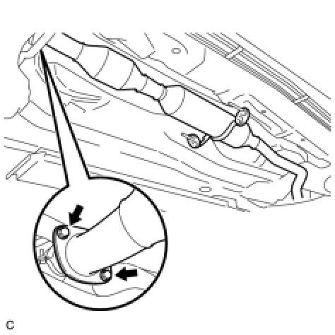 (c) Install the center exhaust pipe assembly with the 2 bolts.