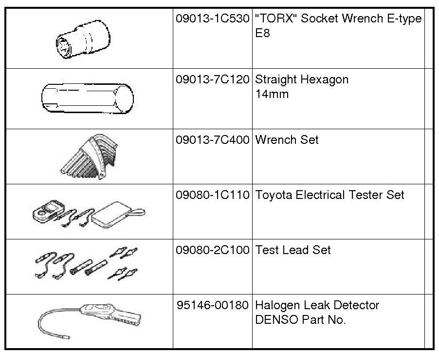 PREPARATION: HEATING / AIR CONDITIONING: RECOMMENDED TOOLS